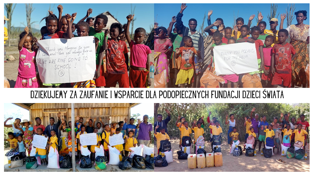 Dzięki Fundacji Dzieci Świata od 2 ch lat dzieci już nie pracują a chodzą do szkoły, cyklicznie dostarczamy im żywność, a także najpotrzebniejsze przybory szkolne, ubrania czy buty.