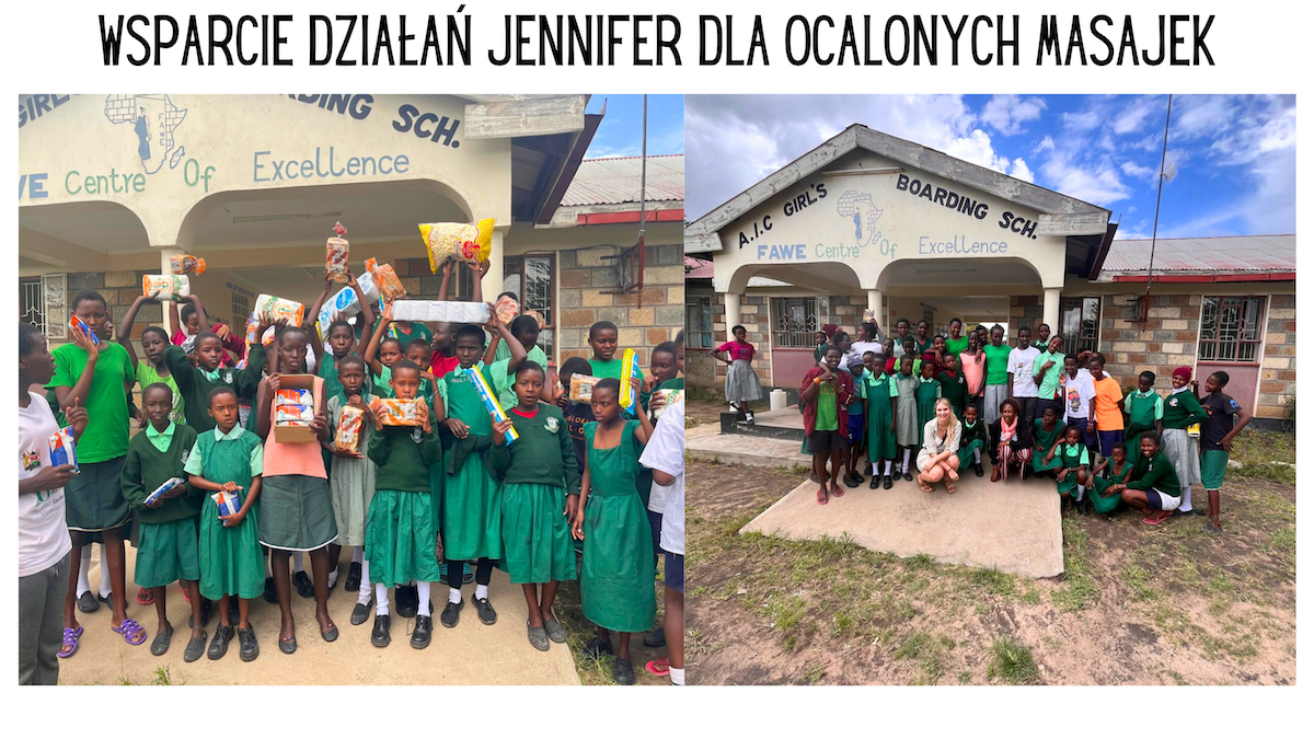 Tam czekała już na nie Jenifer – Masajka która daje dom obecnie 230 dziewczynkom które uciekły ze swoją wiosek. Dziewczynki potrzebują ubrań, bielizny, środków czystości, zeszytów i przyborów szkolnych. Staramy się wspierać działania Jennifer w Kenii na rzecz uratowanych dziewczynek.