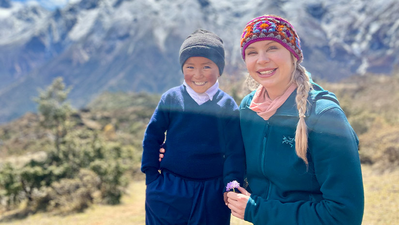 Pemba Nuru Sherpa, 6 letni chłopiec, którego spotkałam we mgle podczas trekkingu w Nepalu. Chłopcem opiekuje się jedynie babcia, mówi, że jedyne czego się boi to, że nie stać jej będzie by wychować i dać edukację wnukowi. Od emisji materiału o Sherpach z Nepalu wspieramy Pembe regularnie. Fundacja Dzieci Świata wspiera Pembę w jego drodze edukacji od 2023 roku.